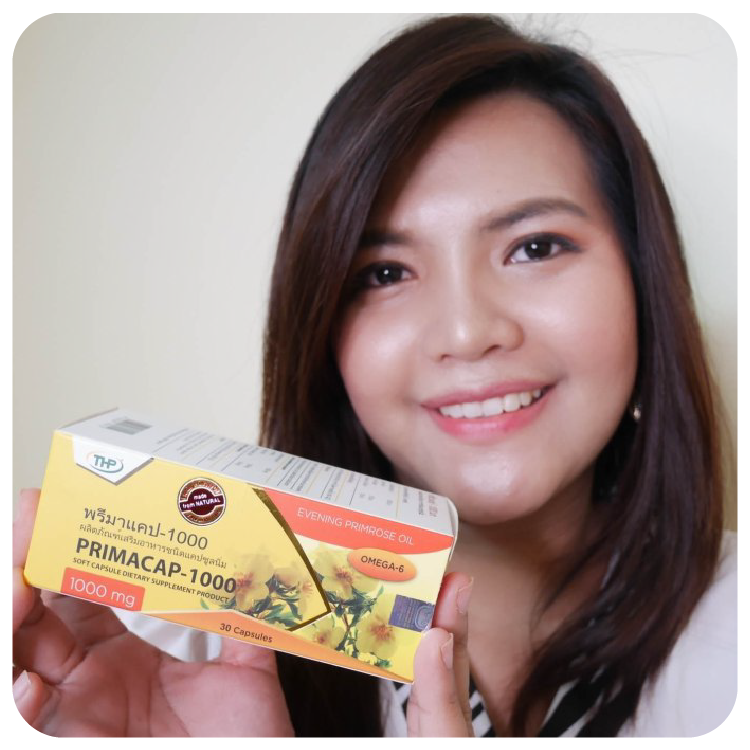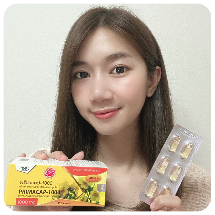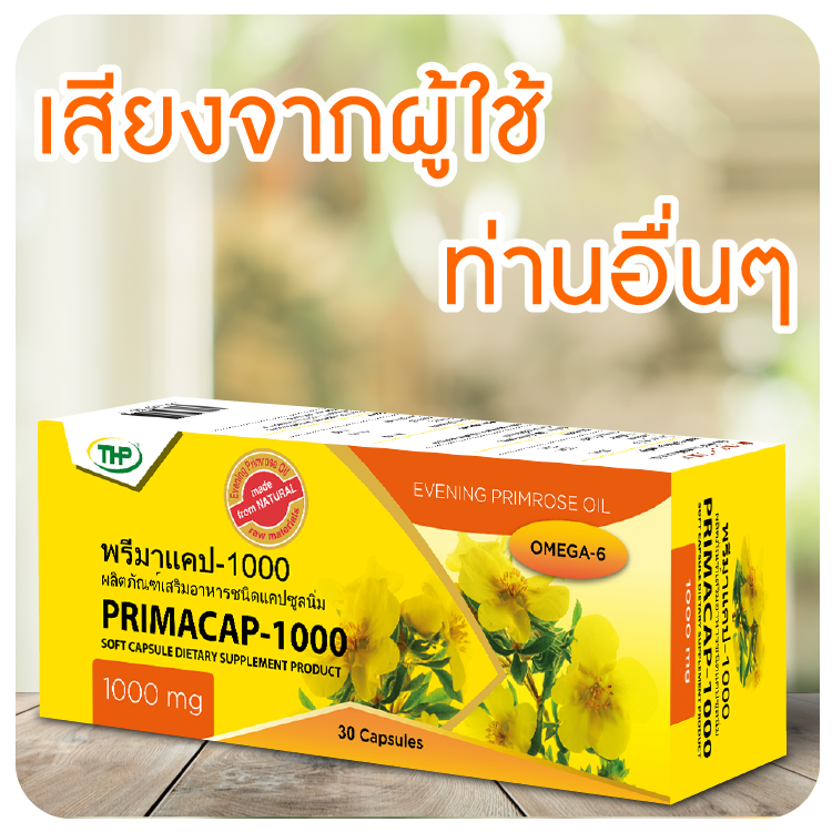 One box of PRIMACAP product (30 capsules) contains evening primrose oil 1,000 mg per capsule and one capsule contains: